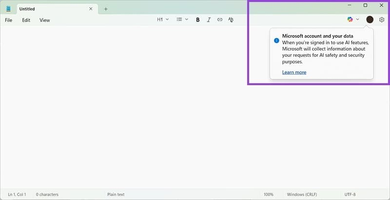 - Check your current Notepad version: Open Notepad and look for the Copilot button (colorful icon) in the toolbar or top-right corner. If it’s there, you have the AI-enabled version.